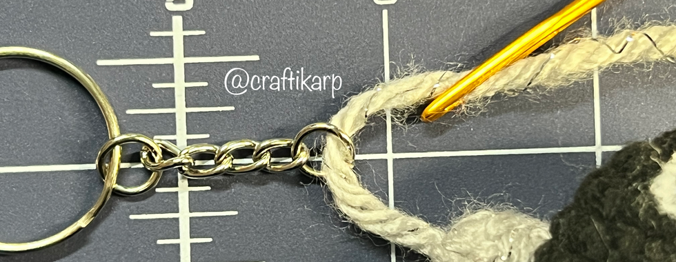 Finish Off and leave a long tail to sew chain base to body AND to attach the Keychain to the chain base (~10 in).